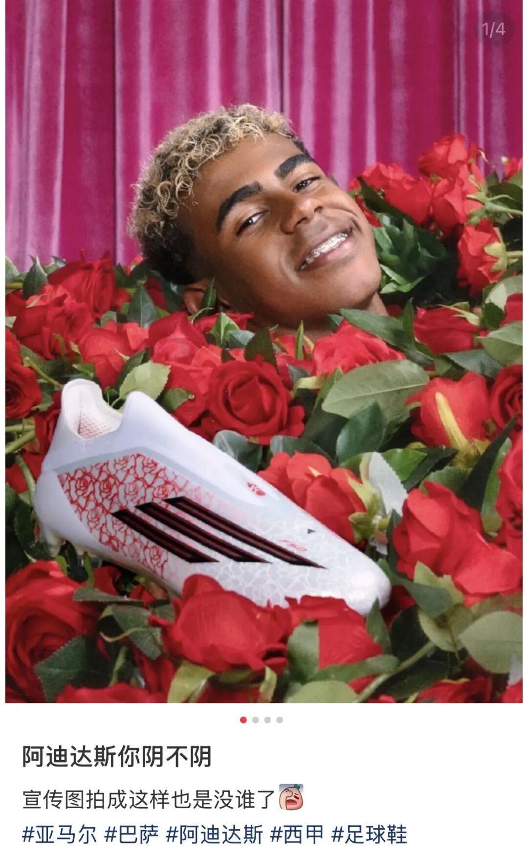 本来想借着玫瑰花的浪漫气息,给这位巴萨小将的新战靴造势,结果愣是让网友看出了满屏的“阴间风”。